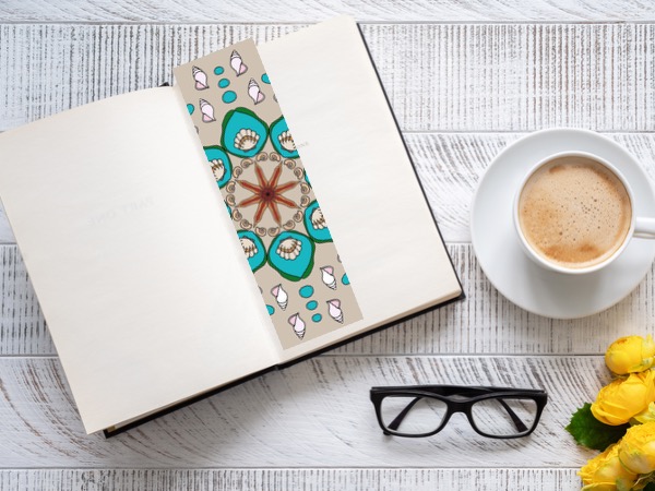 4 Hand Drawn Seashell Mandala Bookmarks to Color