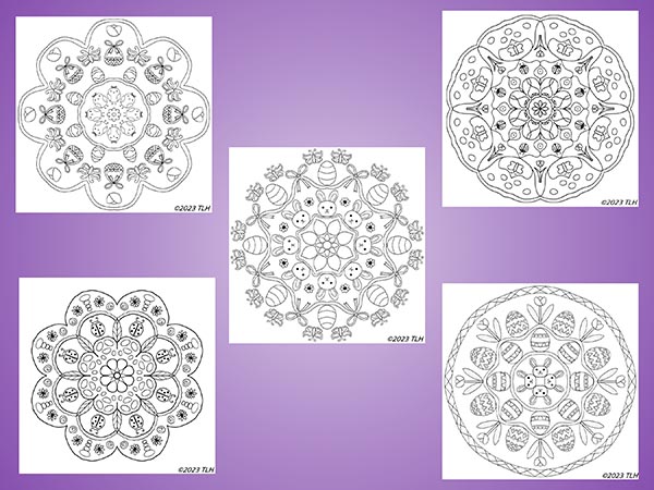 This listing is for 5 Hand Drawn Easter and Spring Mandala Coloring Pages. Print them out, color with pencils, markers, paint, or even crayons. Coloring mandalas can both relax and energize your brain. It uses both the creative and logical sides of your brain, helps your mind relax by focusing on the simple act of coloring, and mandalas are often used as an aid for meditation.