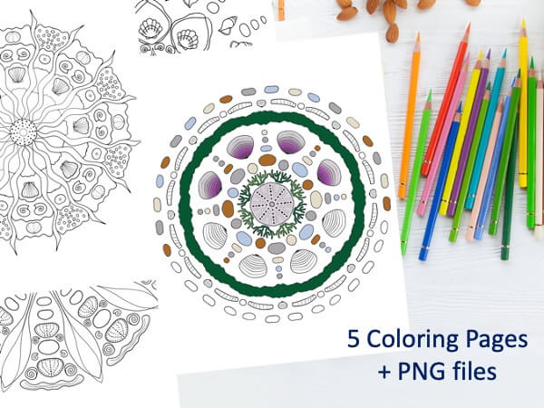 5 Hand Drawn Seashell Mandala Coloring Pages