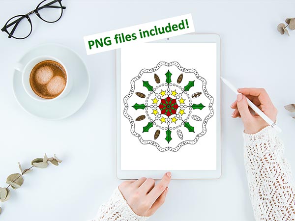 These winter mandala designs are relaxing and fun to color, print them out as many times as you like and color them differently each time. Printing on cardstock is recommended if you plan to use markers or paints. PNG files are also included for easy importing to a coloring app for digital coloring on your iPad or other tablet.